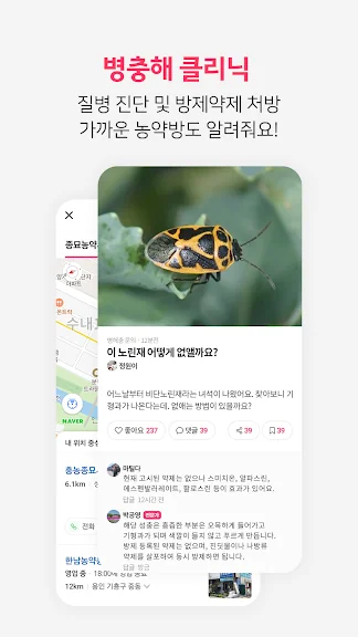 질병의 추천농약, 피해식물, 방제법, 내주변 농약사 지도, 정보를 제공합니다