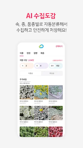 AI로 식별한 속, 종, 품종별로 자동분류해 저장됩니다