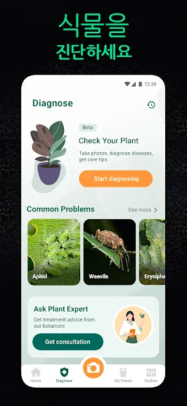 원인 모를 병과 싸우고 있는데 아무것도 도움이 되지 않나요? 식물의 사진을 찍어 요청을 제출하면 실제 식물학자로부터 자세한 답변을 즉시 받을 수 있습니다. 아픈 식물을 다시 건강하게 만들 시간입니다!