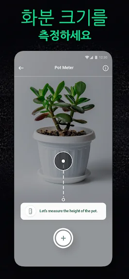 ● Pot meter — 화분 부피를 측정하고 반려식물에게 맞는 크기인지 알아보세요.