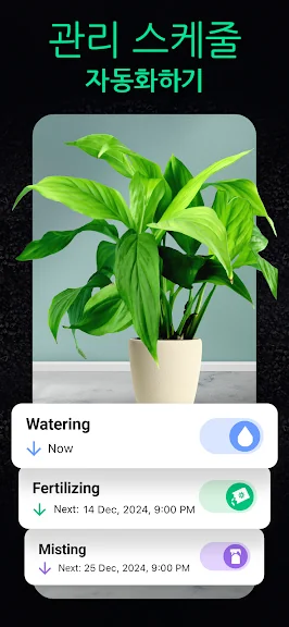 복잡한 식물 관리 권장 방법을 한꺼번에 외워야 한다고 부담 갖지 마세요. 오히려 잘못 관리하거나 중요한 것을 잊을 수도 있으니까요. 앱에서 물 주기, 물 뿌리기, 비료 주기, 분갈이 미리 알림을 설정하고 플랜츠를 행복하고 건강하게 키워보세요.