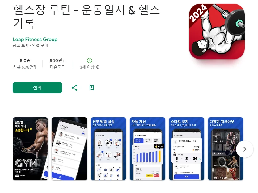 이 어플은 구글플레이스토어에서 "운동 기록"로 검색했을때 1번째로 나오는 어플입니다. 아래는 헬스장 루틴 - 운동일지 & 헬스 기록 어플에 대한 자세한 설명이니 참고하세요.
