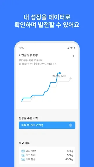 💪 개인 기록을 깨고 보디빌딩, 힘 훈련, 웨이트 트레이닝 진척을 이루는 데 집중하세요.