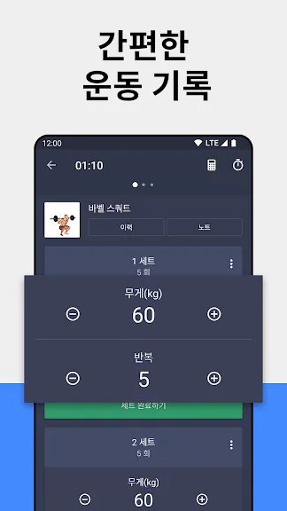 💪 운동 앱은 각 세트의 반복 횟수와 무게를 쉽게 기록할 수 있게 해줍니다.