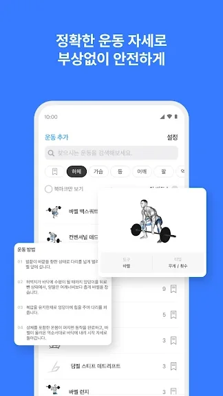 • 원하는 운동은 무엇이든 저희 데이터베이스에 추가