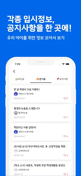 - 학생과 학부모의 커뮤니티가 분리되어 있어요. 마음껏 정보를 공유하기 좋아요.