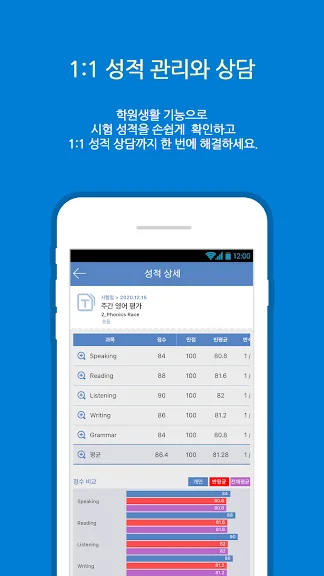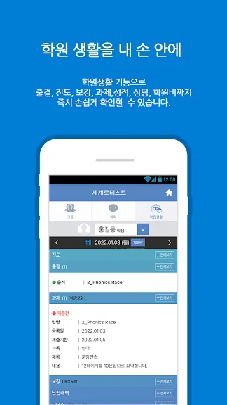 학원출결, 원비납부, 과제물, 시험 점수 등