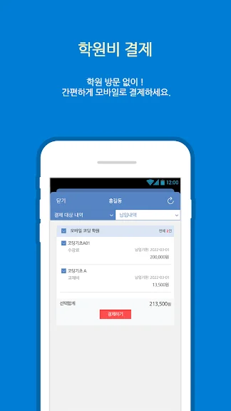 • 번거로운 전화 예약은 이제 그만! 학숲에서 비대면 상담예약과 학원비 결제 기능을 편리하게 사용해 보세요.