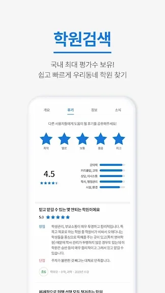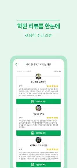 *학원에 대한 실질적인 이용자 리뷰를 보고 학원을 선택할 수 있습니다.