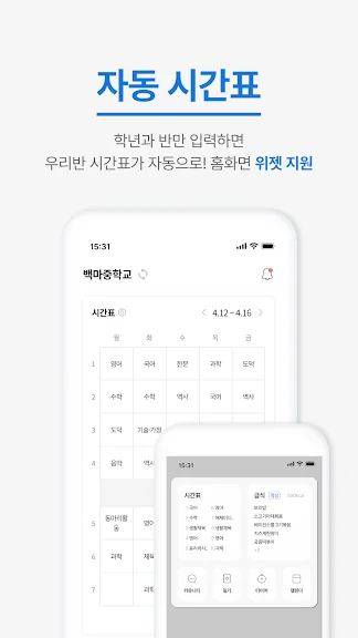 챙기기 번거로웠던 학교 시간표와 급식표를 매일 자동으로 확인하고,