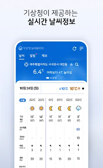 - 시간별 일기예보를 포함한 상세한 24시간 일기예보 제공