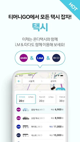 · i.M & 타다 택시 서비스가 추가되었습니다. 티머니GO에서 프리미엄 택시 서비스도 이용해 보세요.