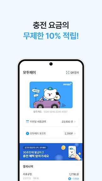 충전기/지역마다 사업자가 달라서 매번 카드를 발급해왔다면, 모두의충전이 개발한 NFC 기반 원클릭 통합 결제 솔루션 ‘모두페이’ 하나로 충전할 때마다 무제한 10% 적립 혜택받으세요.