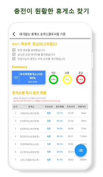 만일 출발 전 설정한 경로상의 휴게소를 지날 때 즉시 충전할 수 있는 확률을 미리 알 수 있다면요? 충전 계획을 미리 만들고 출발한다면 더 효율적인 운전이 가능하지 않을까요?