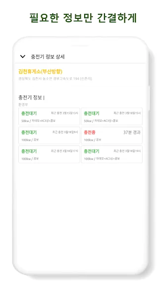 아래는 고속도로 전기차 충전소 어플에 대한 스크린샷 정보입니다.