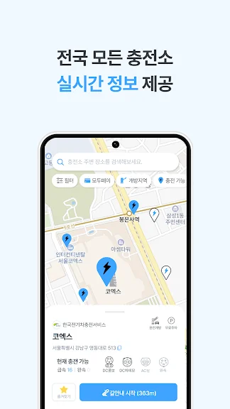 전국 모든 전기차 충전소의 실시간 충전 상황과 충전기 사용 가능 여부를 확인할 수 있어요. 내 주변 가장 가까운 충전소를 검색하여 편리하게 충전해 보세요.