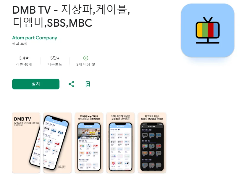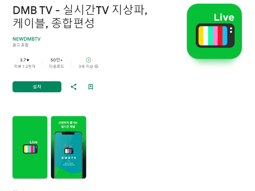 이 어플은 구글플레이스토어에서 "실시간 tv 보기"로 검색했을때 1번째로 나오는 어플입니다. 아래는 DMB TV - 실시간TV 지상파, 케이블, 종합편성 어플에 대한 자세한 설명이니 참고하세요.