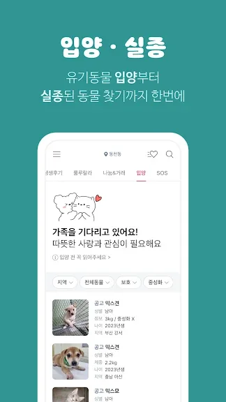 [유기동물 입양 & 실종 동물 검색]
