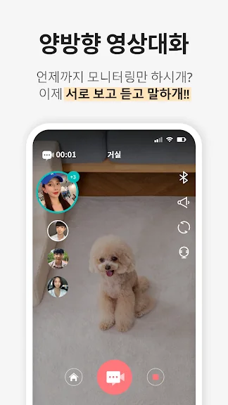 단방향 소통이 아닌 양방향 소통이기 때문에 반려동물도 집에서 보호자의 얼굴을 보며 목소리를 들을 수 있어요~!