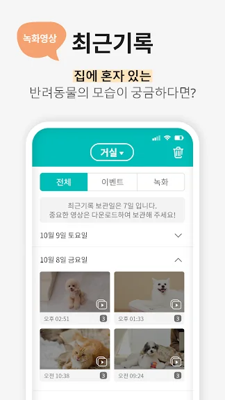 반려동물의 소리나 움직임이 감지되면 자동으로 녹화를 시작한답니다!