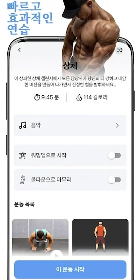 • 빠른 근력 강화를 위한 강렬한 팔굽혀펴기 및 가슴 운동.