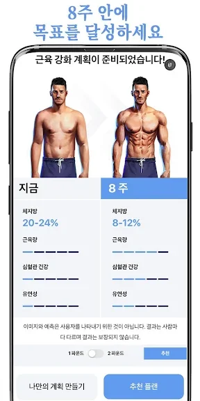 저희 앱을 꾸준히 이용하면 단 몇 주만에 신체가 변하는 것을 느낄 수 있게 됩니다.