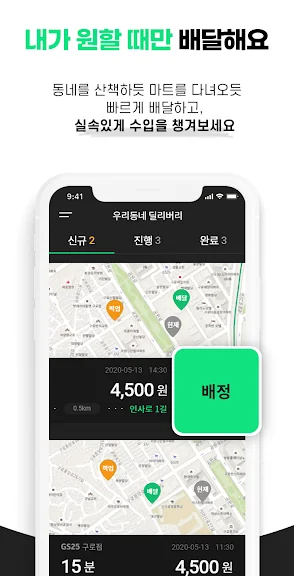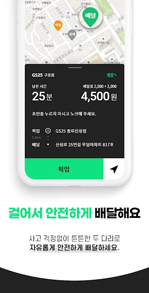 3. 안전배달 수행: 우리동네 매장의 배달을 안전하게 수행합니다.