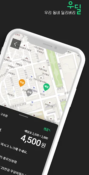 가까운 우리동네 안에서 편의점, 슈퍼마켓 상품 등을 배달하는 배달 전용 플랫폼입니다.