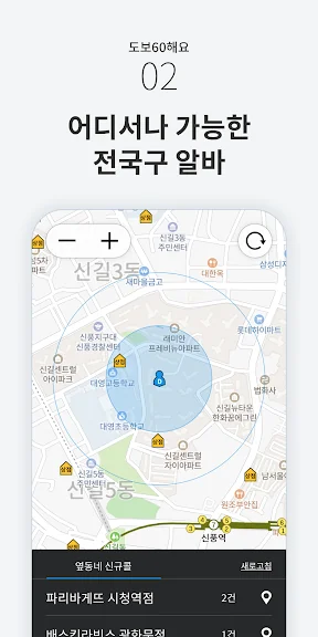 2) 도보60 - 걸어서 하는 우리동네 배달 알바 찾을 땐 어플 스크린샷