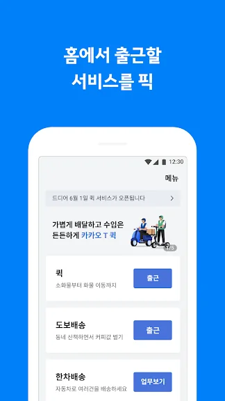 (퀵, 도보배송, 당일배송, 방문세차, 방문정비, 통근 셔틀, 택시, 대리)