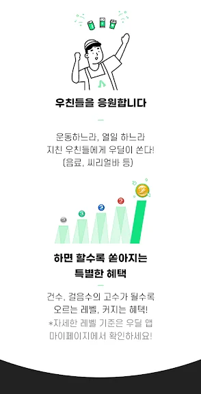 우리동네 근거리에 위치한 매장에서 물품을 픽업하고 배달하기 때문에 특별한 이동수단 또는 운전면허 없이도 도보로 산책하듯 배달이 가능합니다. 도보 배달을 수행할 때마다 쌓이는 지원금과 운동 효과는 덤!
