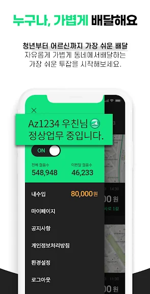 자유롭게 가볍게 동네에서 배달하는 가장 쉬운 투잡을 시작해보세요.