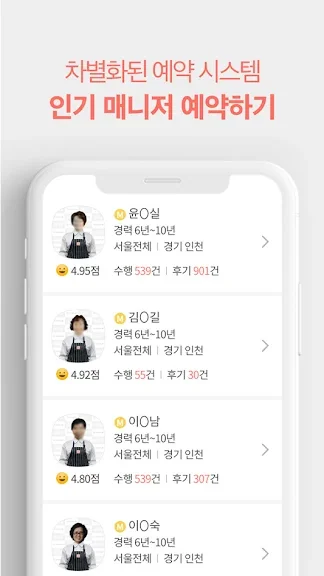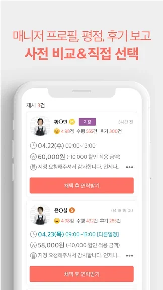 - 원하는 시간과 요금에 따른 전문가를 직접 선택