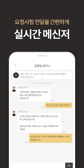 - 앱 내 메신저를 통해 실시간 요청사항 전달 가능