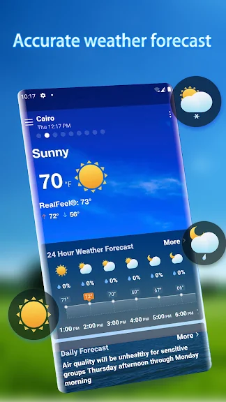 WEATHER FORECAST & LIVE WEATHER는 가장 정확하고 신뢰할 수 있는 일기 예보를 제공합니다. 또한 일출 및 일몰 시간, 습도, UV 지수, 풍속, 대기 질 및 강수량과 같은 가장 정확한 날씨 지표를 제공합니다.