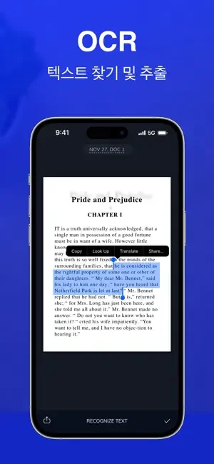 이 어플을 추천하는 이유는 다재다능한 기능들 때문입니다. OCR(광학 문자 인식) 기술을 통해 여러 언어의 텍스트를 정확히 추출할 수 있으며, 얼굴 ID로 문서를 보호할 수도 있습니다. 여러 페이지를 하나로 합치거나 필요한 부분만 골라낼 수 있어 문서 관리가 한층 쉬워집니다.