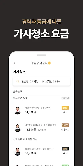- 원하는 시간과 요금에 따른 전문가를 직접 선택