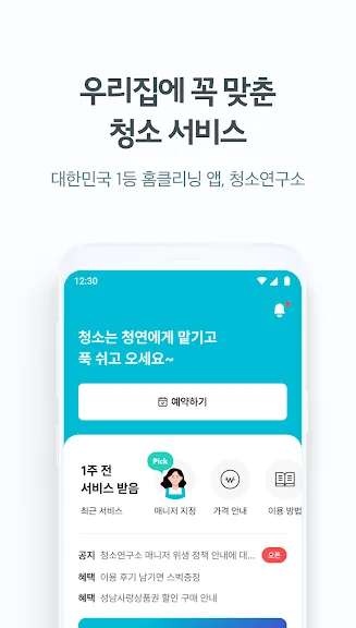 아래는 청소연구소 - 집청소, 사무실청소 어플에 대한 스크린샷 정보입니다.