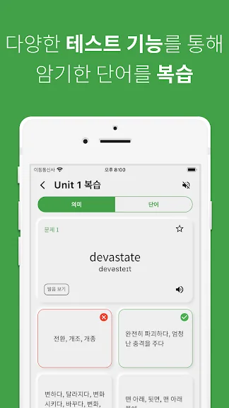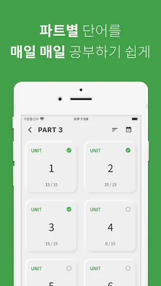 3. 파트별, 유닛별, 전체 단어 복습 기능으로 반복 학습 효과 극대화