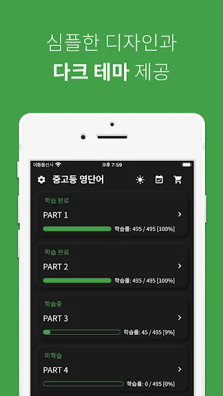 5. 다크 테마 및 학습 진행률 초기화 기능으로 유연한 사용