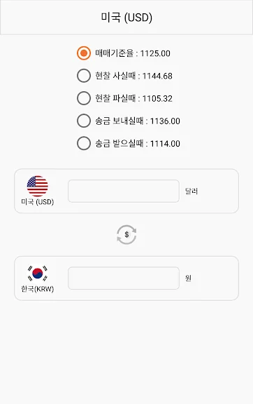 환율정보 어플에 대한 스크린샷 정보가 필요하시다면 아래 이미지를 참고하시기 바랍니다.