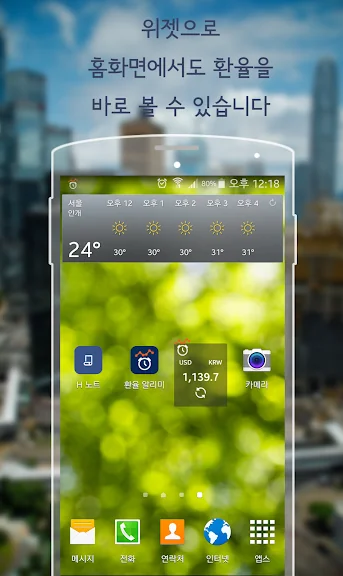 어플을 실행하지 않아도 홈스크린에서 환율정보를 얻을수있다.