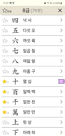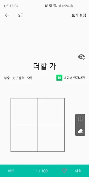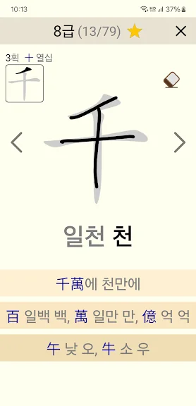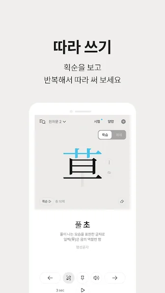 - 한자는 "따라쓰기" 기능을 제공합니다.