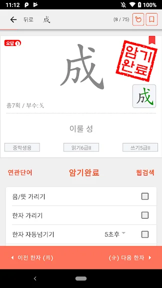 * 한자공부 음과 뜻 가리기, 한자 가리기 기능