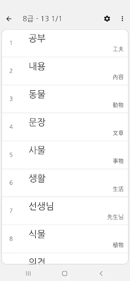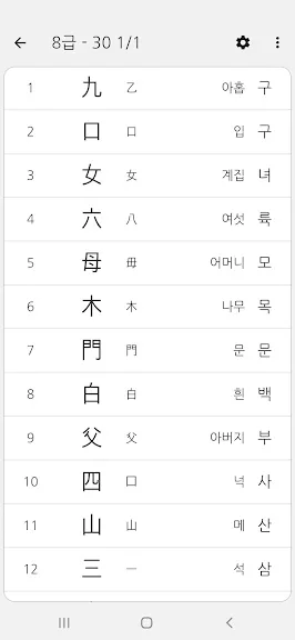 2) 한자, 사자성어 - 급수별 문제, 1일 1한자 위젯 어플 스크린샷