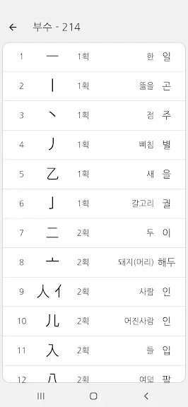 아래는 한자 필기인식 사전 어플에 대한 스크린샷 정보입니다.