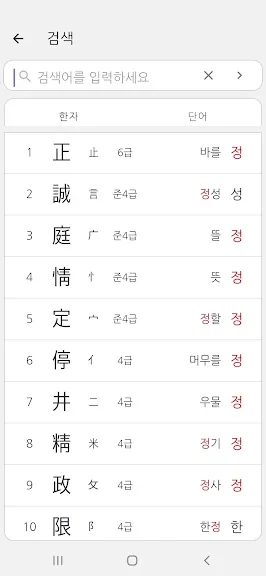 * 한자 독음/훈음 및 한자 단어 검색 지원
