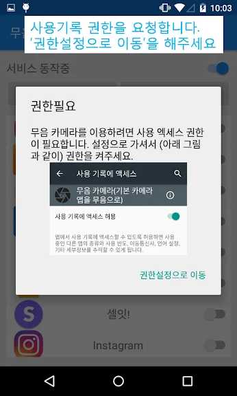 2) 무음 카메라로 어플 스크린샷