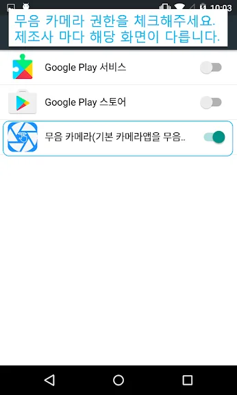 무음 카메라로 어플에 대한 스크린샷 정보가 필요하시다면 아래 이미지를 참고하시기 바랍니다.