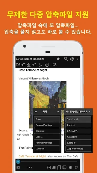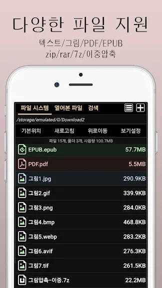 ✔️ 무제한 압축파일 지원 (zip,7z,rar,arj,cbz,cbr,tar)